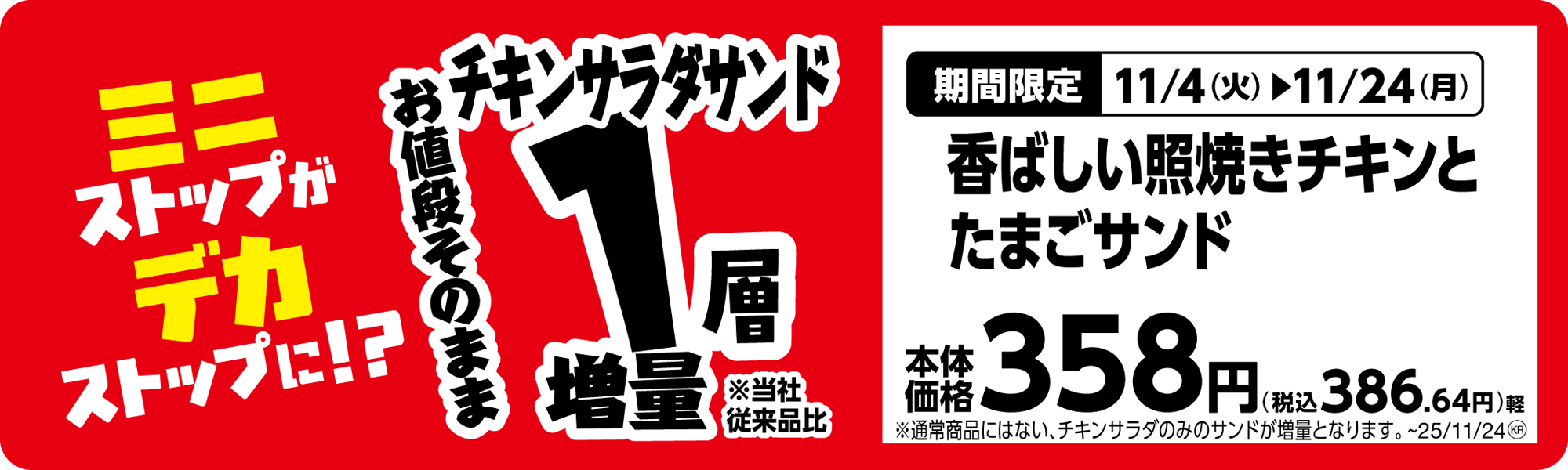 ●セール内容:チキンサラダサンド1層増(当社従来品比)