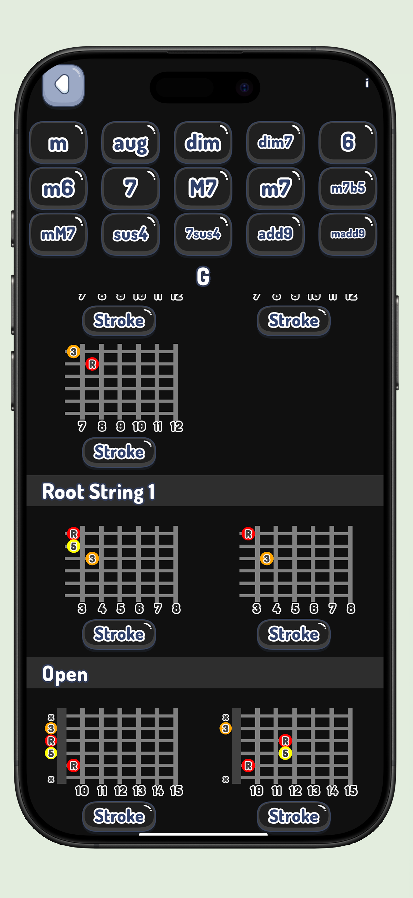 インターバル表記付き - 各コードがどの音で構成されているか視覚的に把握可能