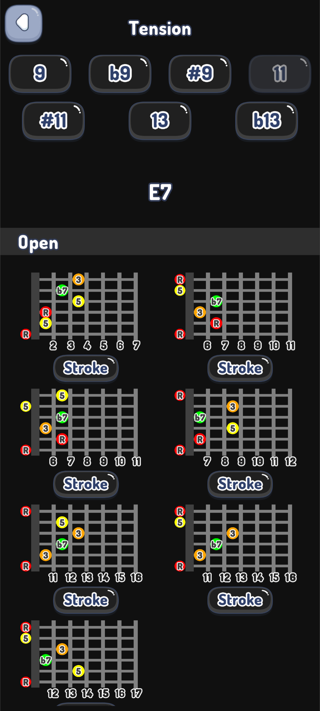 オープンコードを含む豊富なポジション - 29種類のコードを網羅
