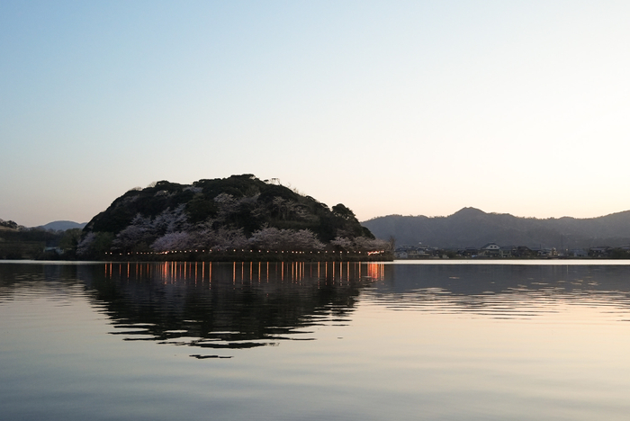 艸花からはライトと桜が湖面に映し出される風景がみられます。