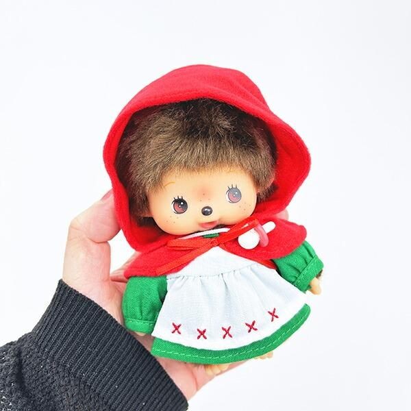 赤ずきんの恰好をした「モンチッチ」ベビチッチのぬいぐるみ