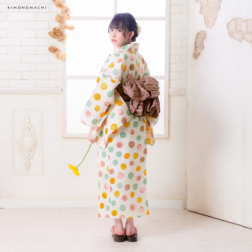 浴衣:生成り色バブルドットピンクモカ