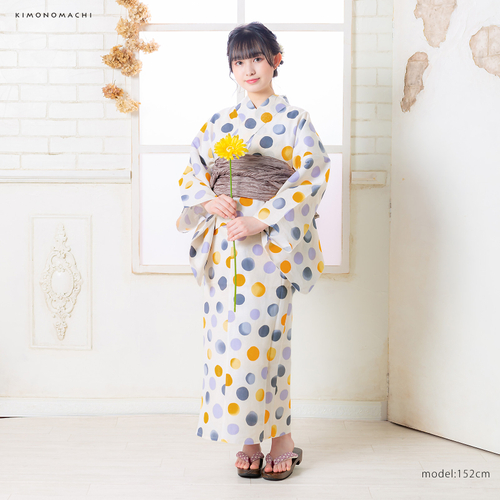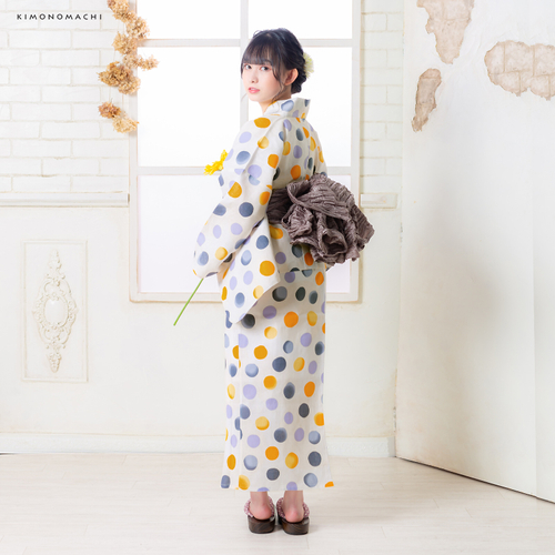浴衣:生成り色バブルドットブルーグレー