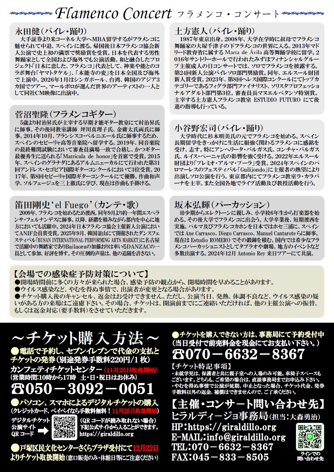 ヒラルディージョ事務局主催、「『Flamenco Concert』~フラメンコ・コンサート~」が2026年3月22日 (日)に横浜市戸塚区民文化センター さくら プラザ・ホール(横浜市戸塚区戸塚町16番地17)にて開催されます。 チケットはカンフェティ(運営:ロングランプランニング株式会社、東京都新宿区、代表取締役:榑松 大剛)にて発売中です。