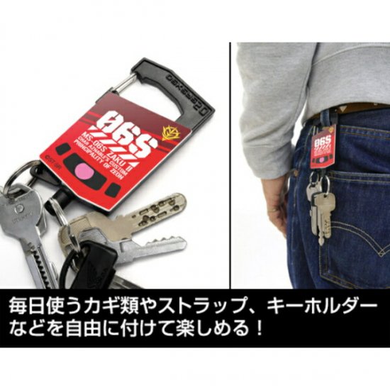 シャアザクをイメージしたリールキーホルダーです!リール部分が伸ばせるので、キーホルダーを腰やカバンに付けたまま鍵が使えます。毎日使う鍵やお気に入りのストラップを付けて、あなた仕様にしてくださいね♪