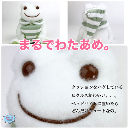 お気に入りのクッションを持って、こちらを見つめる様子はとても愛着がわきます。お気に入りの宝物になるかもしれないピクルスぬいぐるみは、ギフトにも嬉しいサプライズです♡いかがでしたか?皆様に素敵なキャラクターとの出会いがありますように、、、