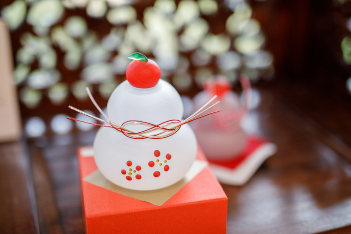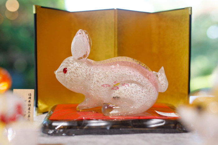 毎年大人気のガラスの鏡餅や、2023年の干支であるうさぎのオブジェなど、自分用にも、贈り物にもぴったりのアイテムがずらりと並びます。手のひらサイズの作品が多いので、日常生活に縁起物を気軽に取り入れることができます。