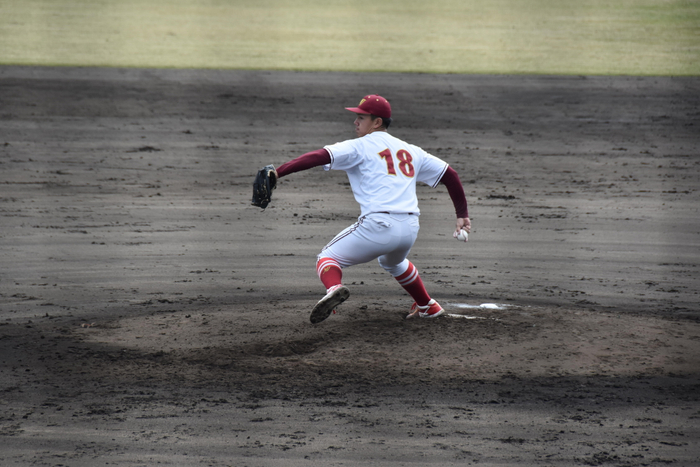 大事な先発を任されたのは2日前にも先発したエースの岩井俊介投手(法学部4年)。初回にエラーなどで1点を失い、苦しい展開ながらもその後はゼロを刻みます。両チームとも譲らぬ白熱した試合で、6回表、相手チームにヒットを許したところで、もう1人のエース・松本凌人投手(法学部4年)にスイッチ。見事に後続を退けます。
