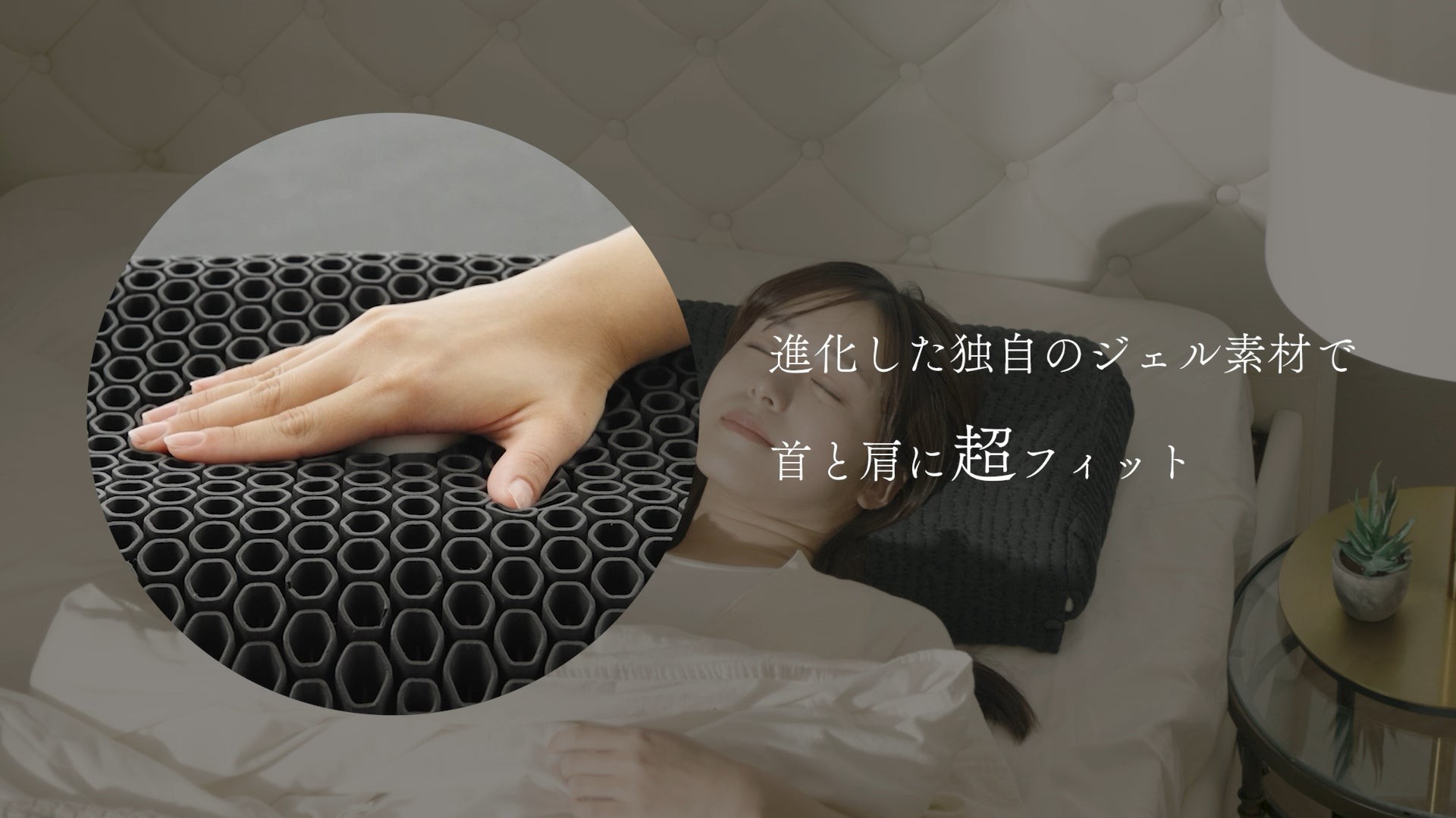 約610個の3Dハニカムジェルが頭を包み込み、まるで無重力空間にいるかのような浮遊感を実現。GOKUMINが誇る日本初の3Dハニカム構造ジェルが、頭圧を分散しながら優しく支えることで、首や肩の負担を最小限に抑えます。朝まで深く眠れる至福の時間を、あなたの毎日に届けます。