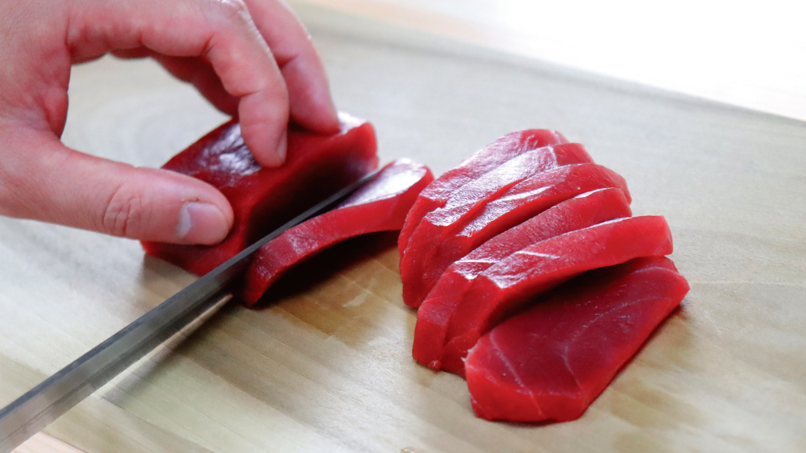 試行錯誤を繰り返すなか遂に、色変わりなく生本まぐろの美味しさそのままに、職人の手で「刺身」にしてお届けできる商品が完成しました!