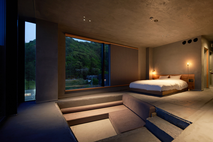 離れは、元は旧いたや旅館の浴場があった建物を大胆にリノベーションしており、1フロア1組貸切のスイートルームを3部屋ご用意しています。