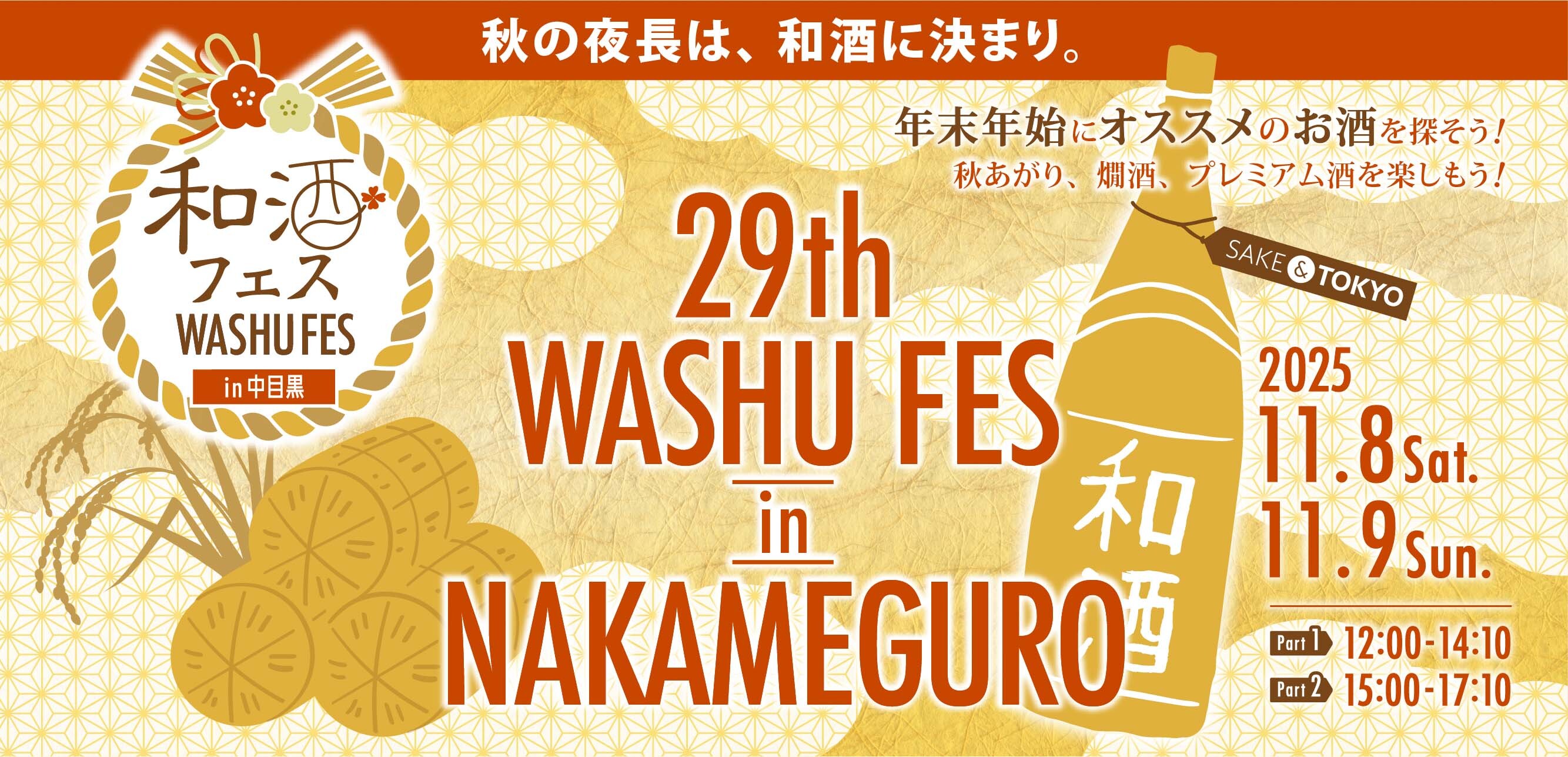 地方創生を応援する和酒フェス実行委員会は、2025年11月8日(土)・9日(日)の2日間、「第29回和酒フェスin中目黒」を開催いたします。イベントは各日2部構成で、第1部は12:00~14:10、第2部は15:00~17:10です。会場は、東京メトロ