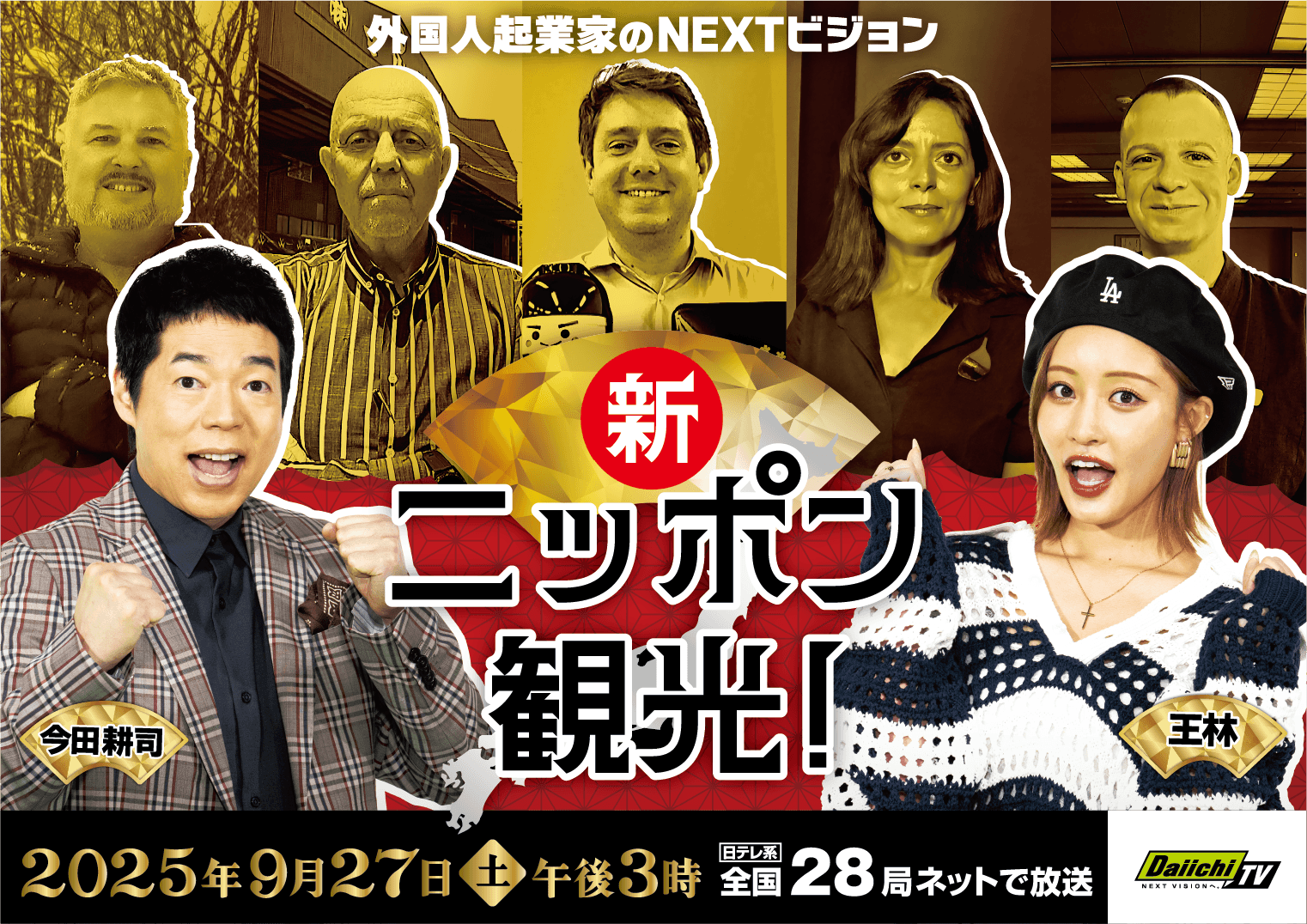 Daiichi-TV(株式会社静岡第一テレビ)が制作する「新ニッポン観光! ~外国人起業家のNEXTビジョン~」が、2025年9月27日(土)午後3時から全国28局ネットで放送されます(※宮城エリアは午後4時から)。