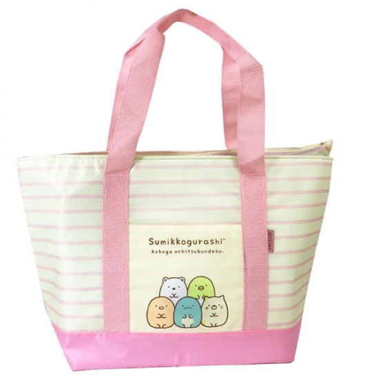 保冷のトート。中がふけて洗える、安定定番の作りです。王道のすみっコ柄、すみっコカラーです。