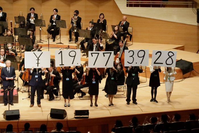 全出演者の歌唱・演奏が終わった後、発起人の三枝成彰、林真理子、湯川れい子らが再びステージに登壇し、今回の義援金の総額が1977万3928円にのぼったことを発表された。そして司会の露木が「『全音楽界による音楽会』、来年も継続いたします。来年も3月11日、こちらのサントリーホールをお借りしてコンサートを開くことになりました」と報告し、「チャリティーコンサートにまた皆様がご協力をいただきますことを心からお願い申し上げまして、今日はお別れしたいと思います。皆様、本当にありがとうございました」と呼びかけて、12年目、10回目のチャリティコンサートの幕が下された。