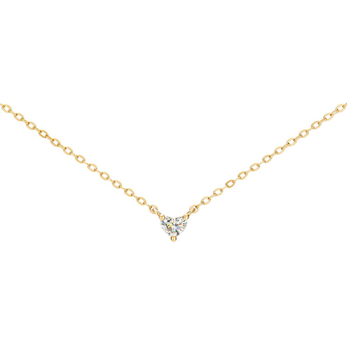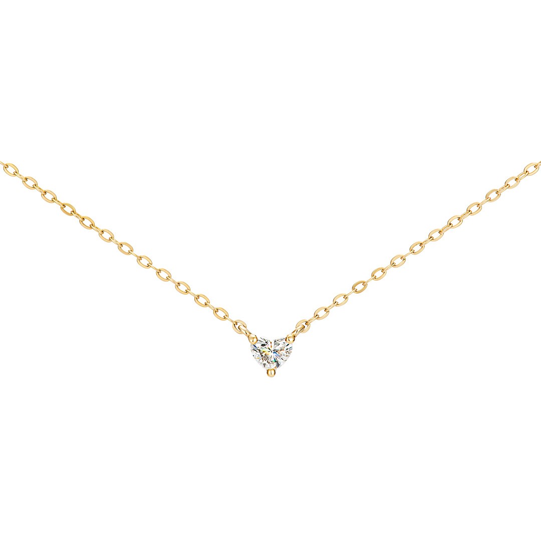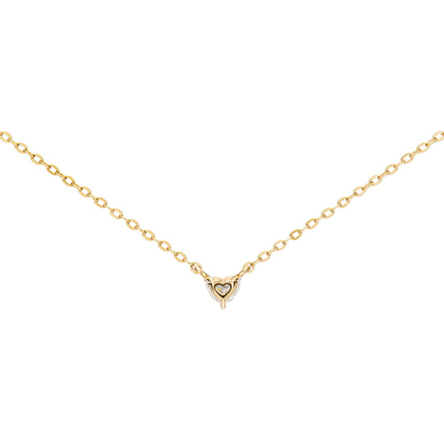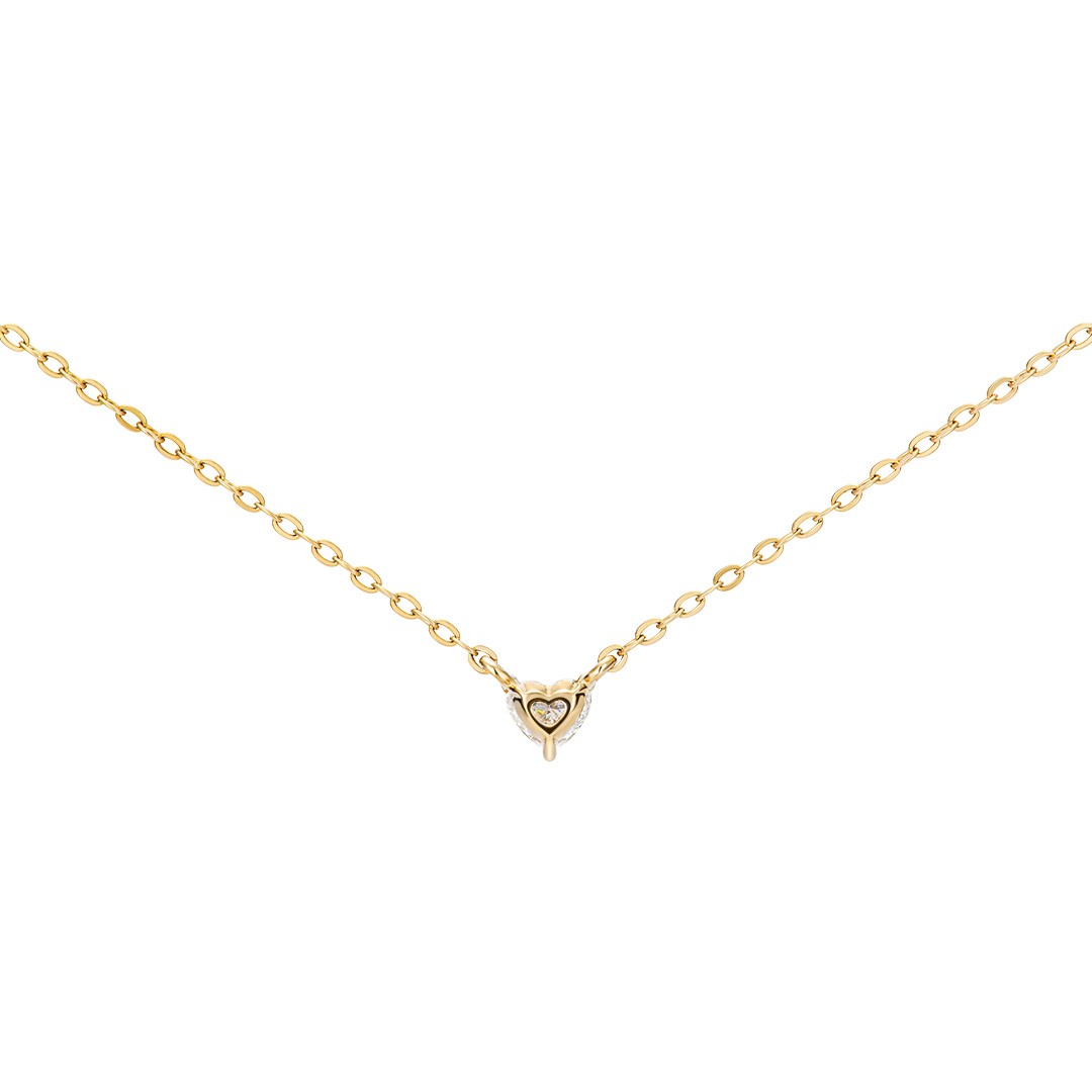小さなハートシェイプダイヤモンドを使用した一粒ネックレス。シンプルに3点の爪でセッティングし、ダイヤモンドが繊細にきらめきます。裏側にもゴールドのハートマークをこっそりと忍ばせ、コンセプトである“心からの純粋な想い”を表現しています。さりげないハートが甘すぎず、どんなシーンでも身に着けられるデザインです。