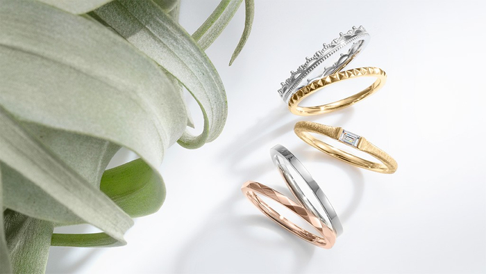 ケイウノでは、重ね着けしやすい細身のファッションリング『Snuggle Ring』シリーズを展開しています。Snuggleとはイタリア語で「寄り添う」等の意味を持ちます。記念日や誕生日、嬉しいことがあった時に少しずつコレクションを増やしていくなど、大切な節目の想い出を重ねながらリングの重ね着けを楽しむことを提案しています。