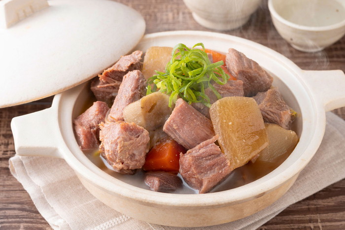 仙台名物の牛タンをやわらかくなるまで煮込み、春キャベツなどの春野菜と一緒に炊き込みました。ごろごろ入った牛タンが贅沢な一品です。