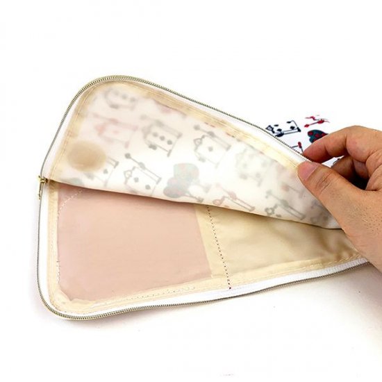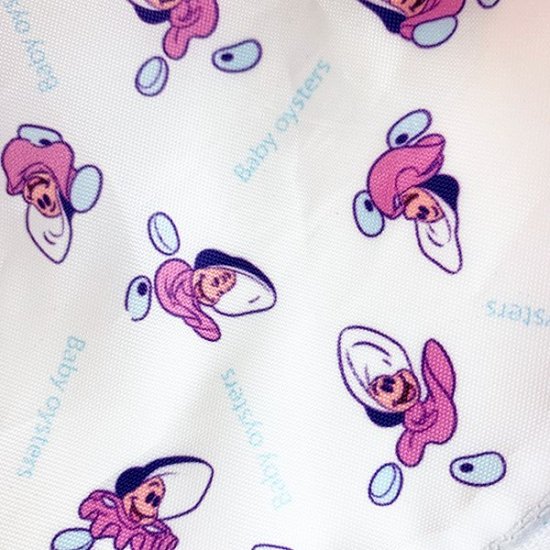 通常のラウンドポーチもあり、中の生地にもベビーオイスターの総柄がデザインされていますよ♪