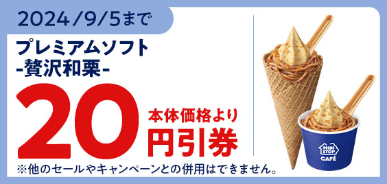 ●クーポン対象商品:贅沢和栗ソフト(贅沢和栗ミックスソフト含む)、プレミアムソフト -贅沢和栗-