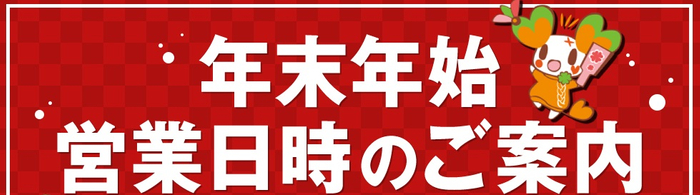 また、年末年始は営業時間が通常と異なりますので、下記のご案内をご確認くださいませ。
