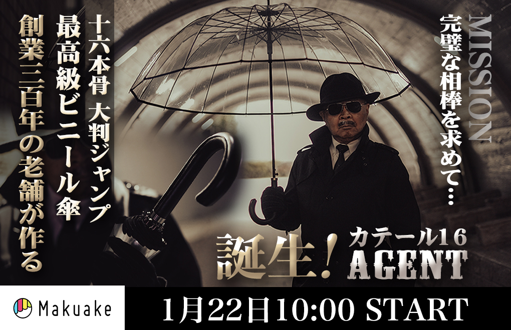 江戸時代に「武田長五郎商店」として創業し、世界に先駆けて「ビニール傘」を開発させた老舗企業として知られる「ホワイトローズ株式会社」は、高級ワンタッチ透明ジャンプ傘、特別バージョンの牛革手元と椿手元の16本骨「カテール16 AGENT」と、8本骨の「カテールMI7」を2026年1月22日(木)、クラウドファンディング・プラットフォームMakuakeにおいてリリースいたします。どちらも大判の65センチ。2026年1月22日(木)10:00から2026年5月11日(月)22:00までプロジェクトを継続いたします。カジュアルからフォーマルな装いまで、あらゆるシチュエーションで使用できる、スタイリッシュでお洒落な高級ビニール傘です。