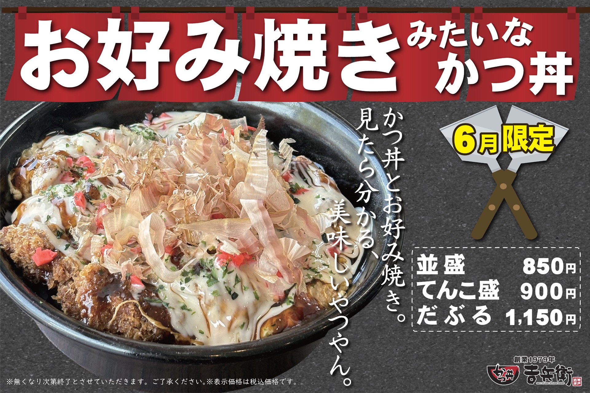 神戸三宮にて1979年に創業した老舗かつ丼吉兵衛を運営する株式会社 吉兵衛(本社:神戸市中央区 代表取締役:上林 守)は、期間限定商品として「お好み焼きみたいなかつ丼」を2024年6月1日(土)~6月30日(日)に販売いたします。