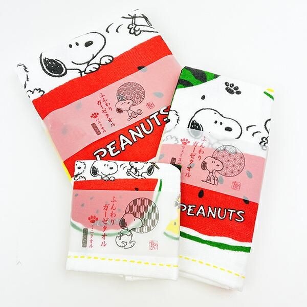 今回はスヌーピーのふんわりガーゼタオルシリーズでした。綿100パーセントのふんわり薄手素材が普段使いにぴったりなかわいらしいタオルではないでしょうか、サイズ違いもそろっているのでタオルをスヌーピーでそろえるのもおすすめですよ。