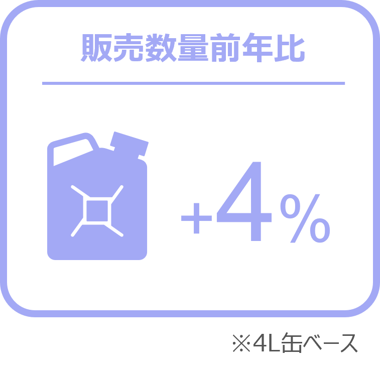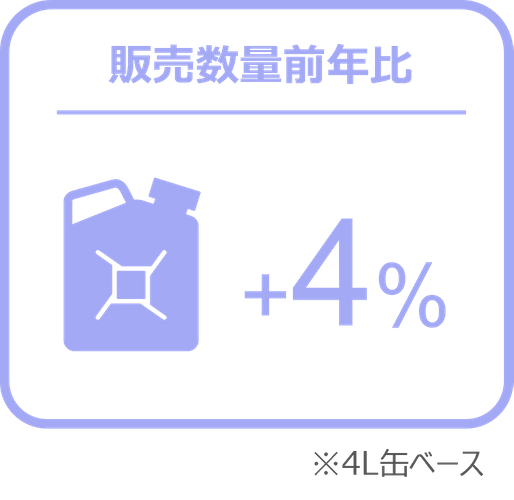 2024年8月の自動車用エンジンオイル販売は、販売量(リットル換算)ベースで前年比17%増と二桁成長を見せた。販売形態別にみると、量り売りは販売量前年比25%増と大幅に伸長し、缶売りは同7%増であった。4L缶の販売は数量前年比4%増と微増であった。店頭では同6%増であったものの、インターネットでは同10%減と前年を下回った。販売数量の多い0W-20は前年並みであったが、0W-16では数量前年比27%増と著しい伸長を遂げた。