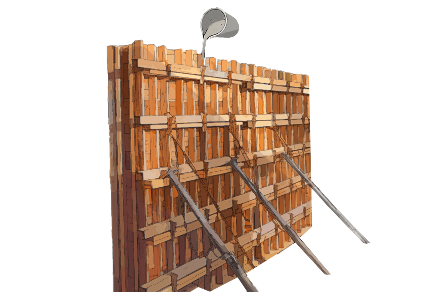 本製品は、独自の「深堀りうづくり加工」により、杉の木目を立体的に際立たせることができる型枠材です。この加工によって転写されるコンクリート表面は、無機質になりがちな壁面に自然のぬくもりを加え、意匠性を重視する公共建築・商業施設などでの採用が広がっています。
