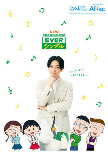 「ちびまる子ちゃん」とコラボレーションした今回の新プロモーションでは、俳優の吉沢亮さんがアフラックの新CMキャラクターとして登場し、「まるちゃん」「たまちゃん」「花輪クン」「丸尾君」と共演する実写版とアニメ版の2タイプのTV-CMを制作しました。CMソングは、2003年~2006年まで放送していた<一生いっしょの医療保険 EVER>のTV-CMで大きな話題となり、幅広い層に親しまれている「よーく考えよう」の歌で、今回17年ぶりにアフラックのCMソングとして復活します。
