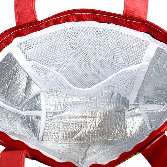 内側はアルミ仕様なので、保冷や保温効果もバッチリ♪メッシュポケットもあるのでここに保冷剤を入れられちゃいます。夏場や冬場はもちろん、オールシーズン活躍します。