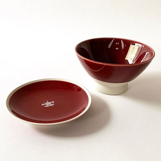 茶碗&小皿セットには、赤色バージョンもあります。こちらは、よりレトロっぽさが引き立ちますよね。