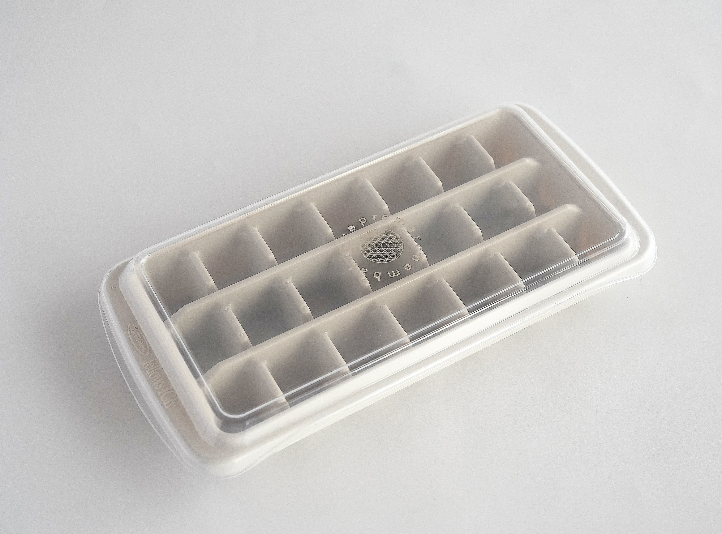 これまで多くのお客様から寄せられた「氷もエンバランスで作りたい」というご要望にお応えし、製氷だけでなく離乳食や出汁の小分け冷凍など、多用途に使える万能トレーとして開発しました。フタの中央には、生命の根源を表す幾何学模様の「フラワーオブライフ」を配し、機能性とエネルギーの調和を追求しています。