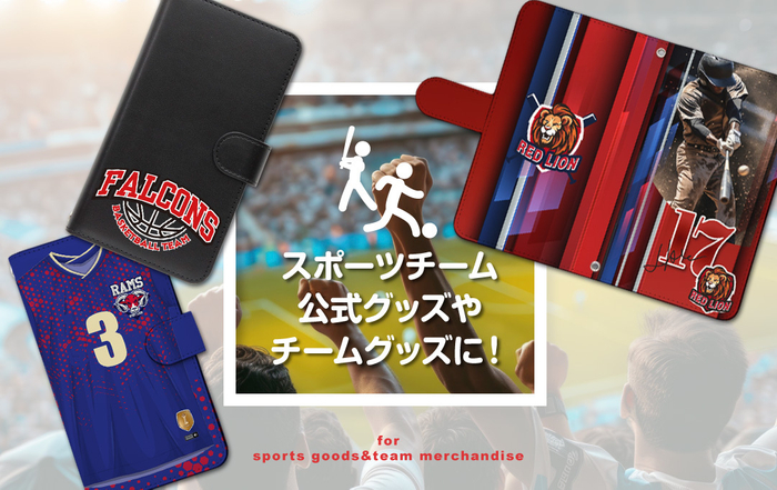 オリジナル 手帳型スマホケース(多機種対応 回転スライド方式)は、野球やサッカーを始めとしたプロスポーツチームの公式グッズにもオススメです。選手個人のビジュアルをデザインしたケースや、チームのロゴやキャラクターがデザインされたケースは、ファンアイテムとして人気のグッズになります。