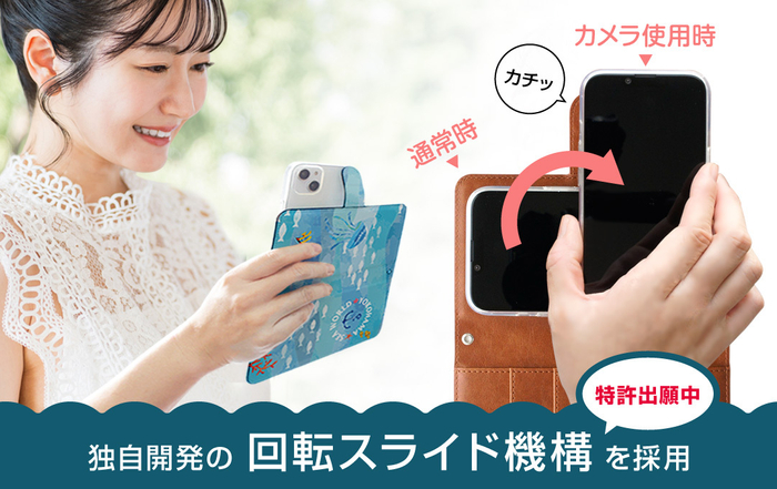 独自開発の「回転スライド機構」採用の多機種対応の手帳型スマホケースです