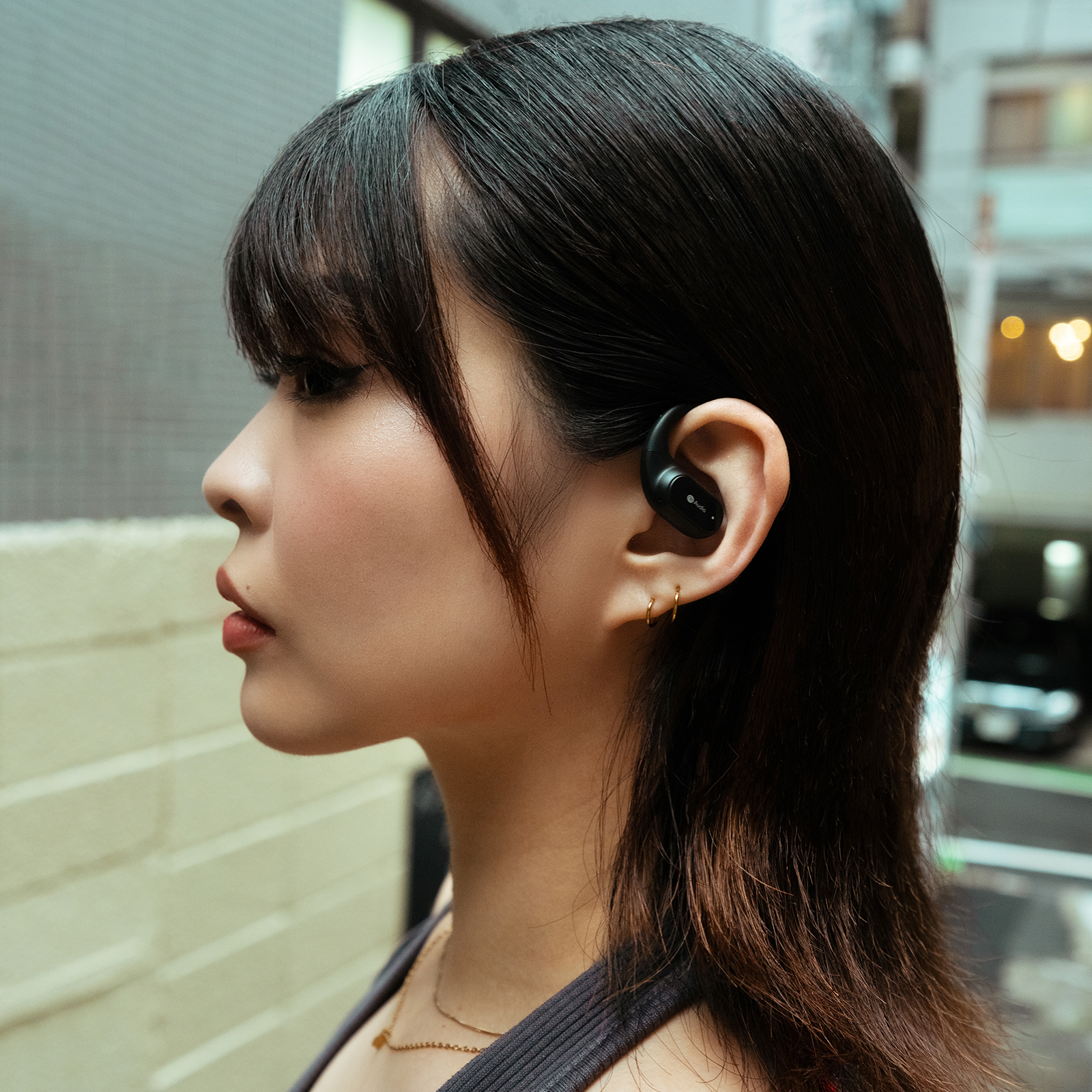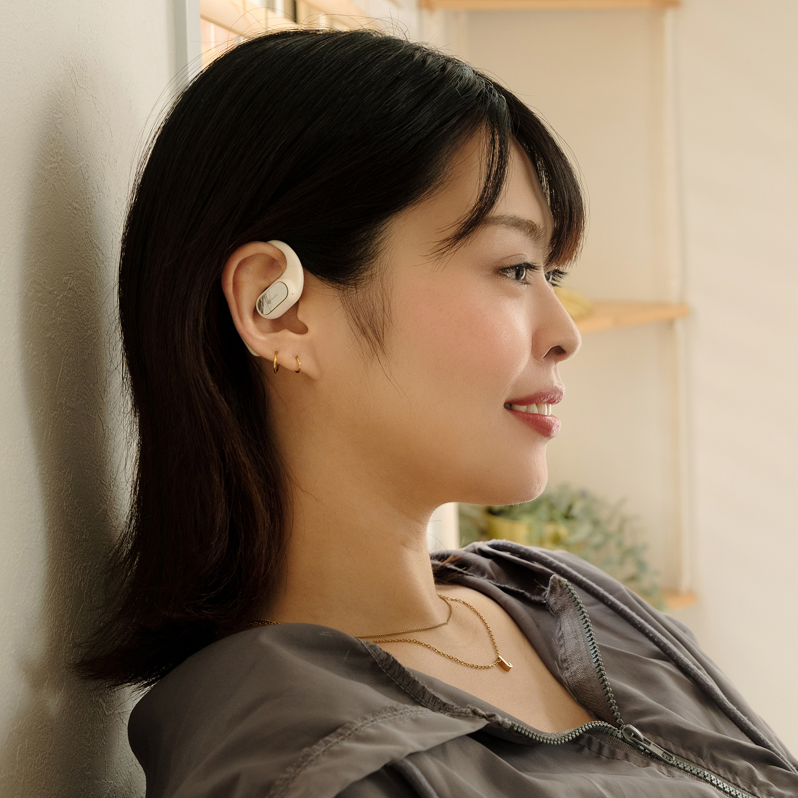 「Open÷」は耳の小さい方も使いやすい軽量&スリムなデザインで、最適な装着感により様々なシーンで活躍する耳を塞がないオープンイヤータイプの完全ワイヤレスイヤホンです。