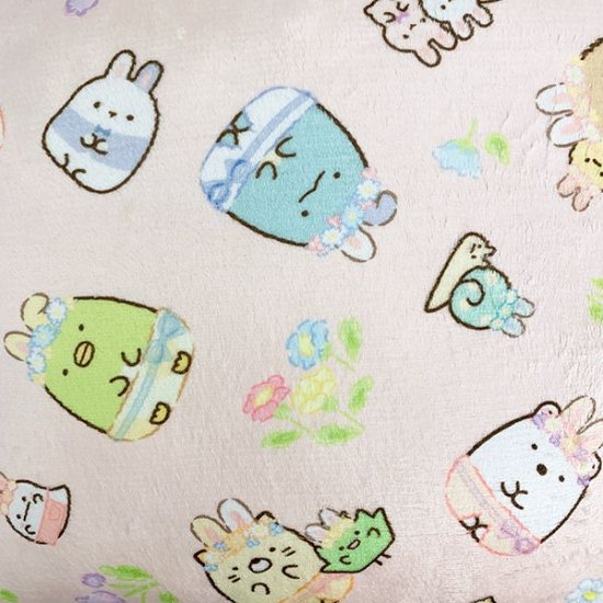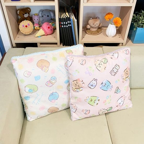 ふわもこクッションのデザインを3つご紹介できたらと思います。まずはうさぎデザインから♪すみっコの仲間たちがうさぎに変身している、とっても可愛いデザインです。パステルカラーも癒されますよね!