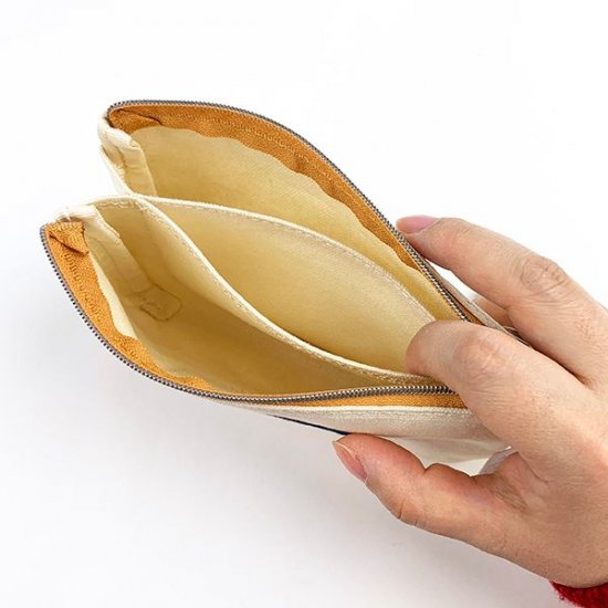 こちらは、フラットな3ポケットポーチです。人気のポケットポーチにも、ついにチャーリーブラウンのデザインがお目見え♡