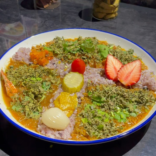 もともと30年前に原宿でスープカレー店「ミミアン」を営んでいた店主は昨年で再びカレーの世界へ!再デビューを機にスープカレーのノウハウを活かした限定スパイス出汁カレーを提供してます。