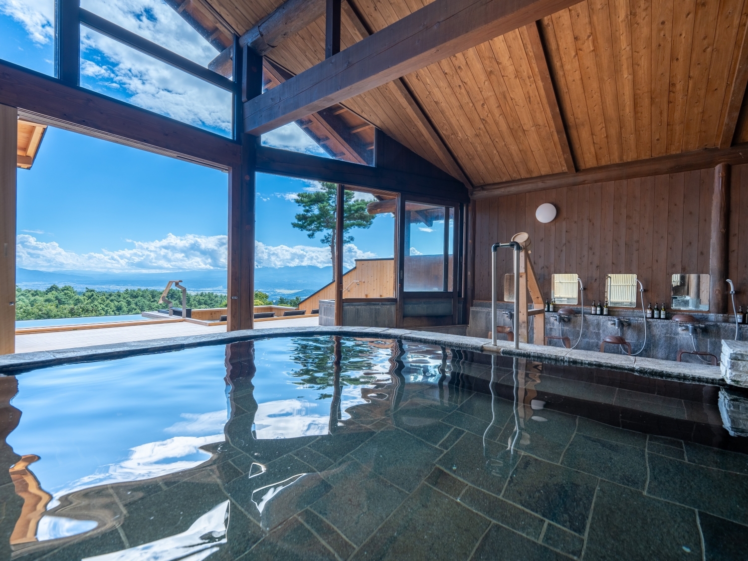 標高2000メートルの絶景温泉、眼下に雲海を望む「こまくさの湯」は、星空や雲海、富士山から八ヶ岳連峰の雄大な山々など思い出に残る、感動的なロケーション。