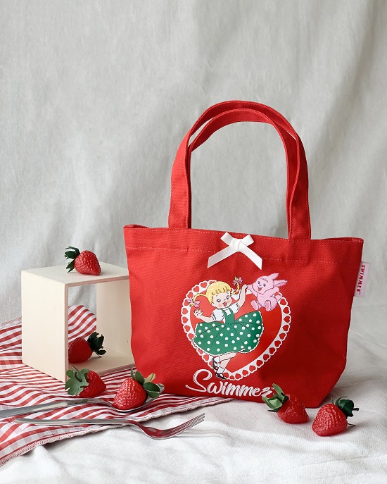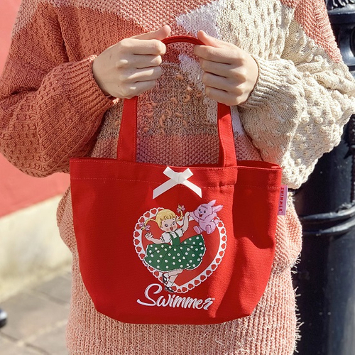 ポップな女の子とうさぎちゃんが可愛いランチバッグです。