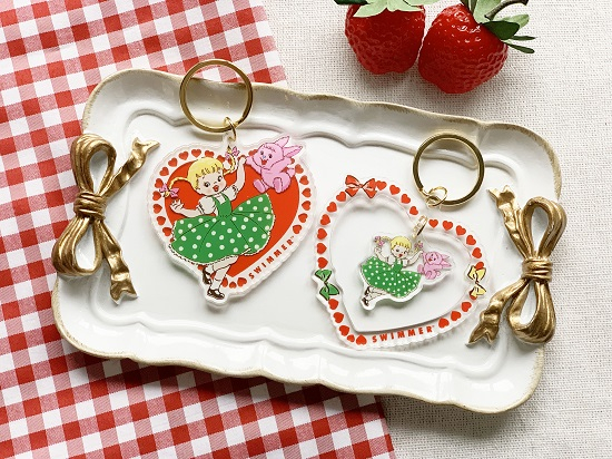 先ほどご紹介したバッグにぜひ付けて頂きたいのが、このキュートなアクリルチャーム♡ひとつは大きく描かれた女の子デザイン。