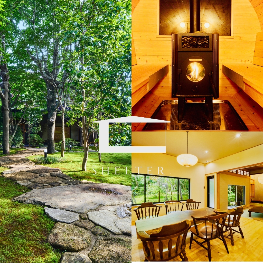 SHELTER.は「自然が人間の本能を解き放つ」をテーマに、火と自然、人とのつながりを再構築する一棟貸し宿ブランドです。人間にとって自然とは生命の原点。古代、狩猟採集時代から共に歩んだ歴史は、DNAに深く刻み込まれています。大自然に包まれた一日一組限定一棟貸し別荘。本物のプライベート空間をお楽しみいただけます。また災害時には地域の一時避難所としても機能し、人と地域を支える新しい宿の在り方を目指しています。
