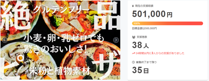 アレルゲンフリーな米粉ピッツァ「PLANTLY(プラントリー)」を製造・販売するBIOREX(所在地:福岡県北九州市門司区、代表:徳永 安紀)は、クラウドファンディングプラットフォームのCAMPFIREにて、“誰もが安心して食べられる”「プラントベースピザ」の先行販売し、公開後5日間で目標金額50万円を早期達成、応援サポーター38名の応援購入を頂きました。
