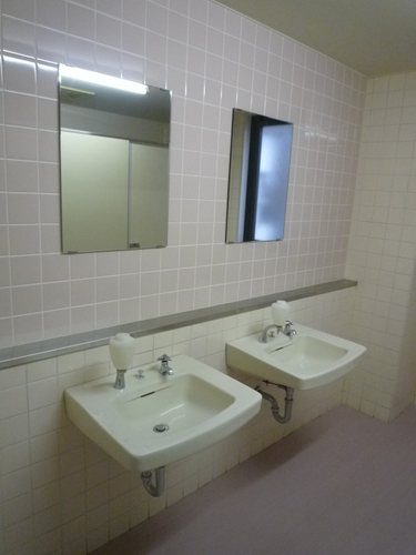 予算が相当厳しかったので、女子トイレだけウォシュレットにして、洗面台周りと照明、鏡を変えました。