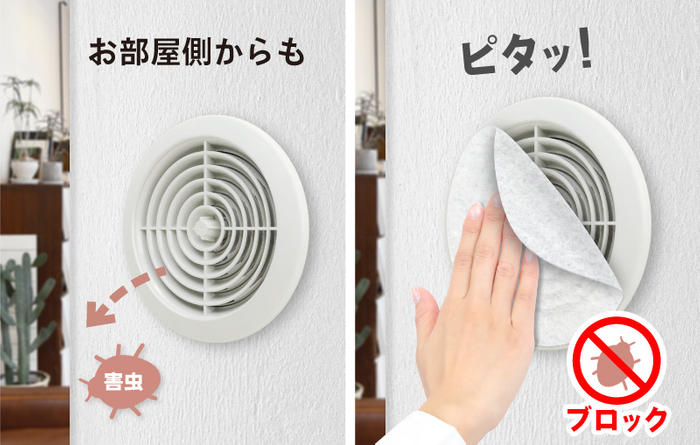 通気口は屋外側と室内側があるので、どちらも貼っておくとより安心です。