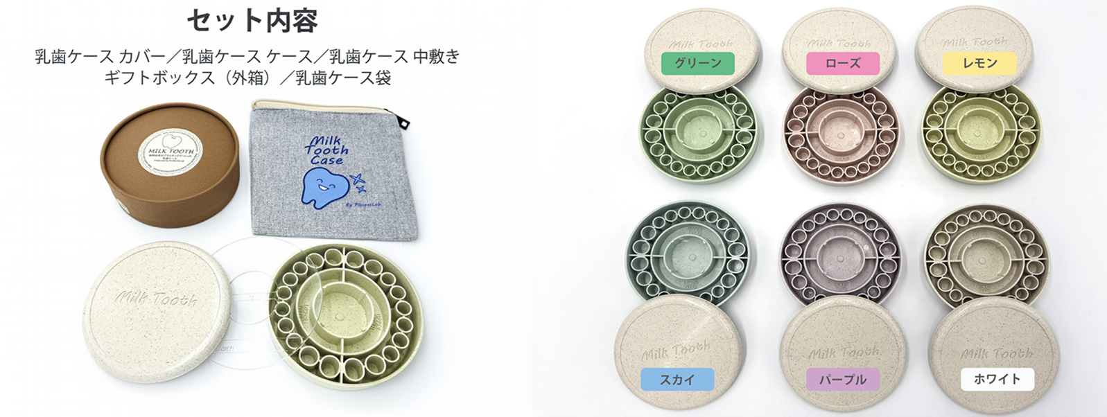 「MILK TOOTH」は、植物由来のプラスチックと、廃プラスチックをアップサイクルした環境にやさしい乳歯ケースです。乳歯ケースは、抜けた乳歯はお子さまの成長記念として保管し、日付や抜けた歯の位置を記録でき、成長記録として残せるのも乳歯ケースの便利な点です。