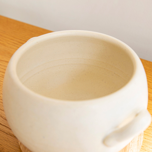やさしい色合いで、コロンとした形がかわいらしいごはん鍋は、炊きたてをそのまま食卓に出しても、すっとなじんでくれるシンプルなデザインです。