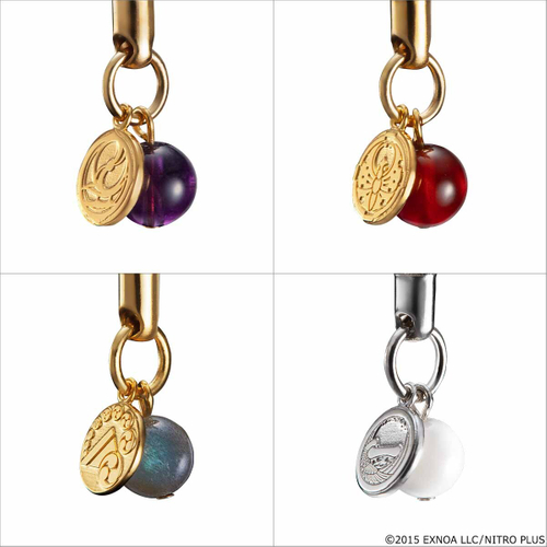 薬研藤四郎はアメシスト、大包平はカーネリアン・・・それぞれのカラーをイメージした天然石と、刀剣男士紋のチャームが付属します。